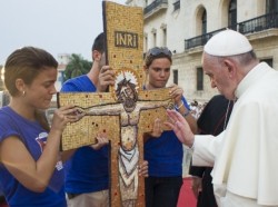 Et si je rencontre un jeune sans espérance – je l’ai déjà dit une fois – ce jeune est un « retraité ». Il y a des jeunes qui ont l’air de partir à la retraite à 22 ans. Ce sont des jeunes avec une tristesse existentielle. Ce sont des jeunes qui ont misé leur vie sur un défaitisme de base. Ce sont des jeunes qui se lamentent. Ce sont des jeunes qui fuient la vie. Le chemin de l’espérance n’est pas facile et on ne peut pas le parcourir seul. Il y a un proverbe africain qui dit : « Si tu veux arriver vite, pars tout seul ; mais si tu veux aller loin, pars accompagné. » Et je veux que vous, jeunes Cubains, même si vous pensez différemment, même si vous avez des points de vue différents, vous marchiez en compagnie, ensemble, en cherchant l’espérance, en cherchant l’avenir et la noblesse de votre patrie.